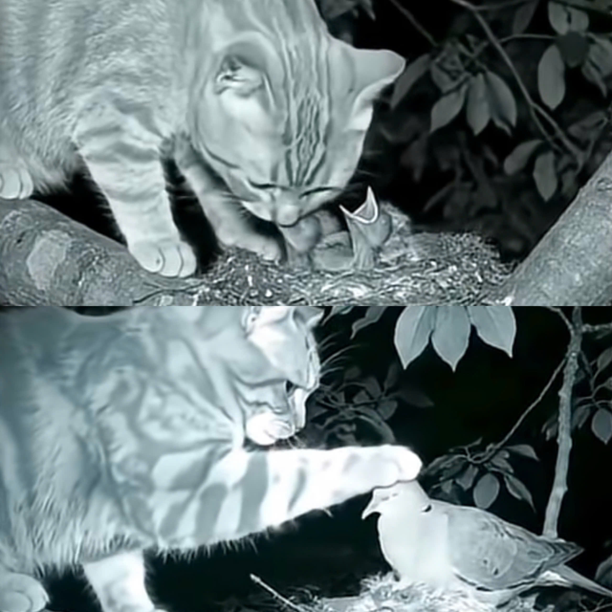 A gentle cat, a natural predator of birds, approached the nest with a different intention. Instead of attacking, the cat chose compassion. With great tenderness, the cat leaned down, offering food to the hungry chicks. One by one, they opened their tiny beaks, trusting the unexpected caregiver who was there to nurture and protect them, just as their own mother would.
